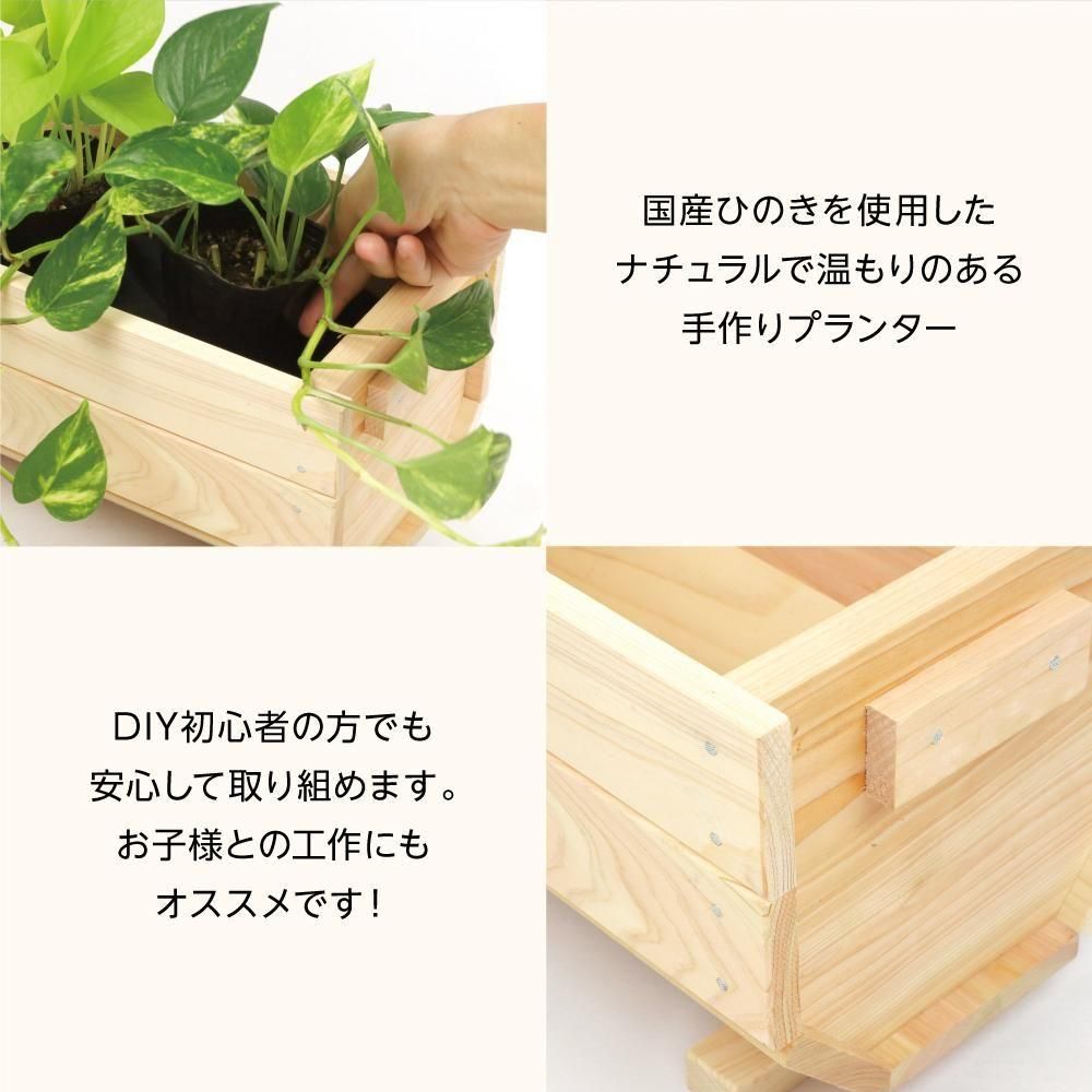 このプランターキットは、国産ひのきを使用したナチュラルで温もりのある手作りプランターです。